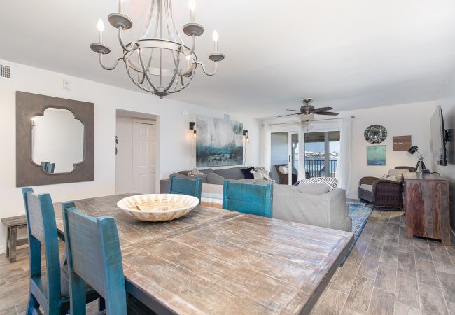 Sleeping arrangements include a Queen master suite and a guest room with queen + bunk (full on bottom, twin on top), plus the sleeper sofa—this condo comfortably sleeps the whole crew. Whether grilling at the BBQ pits, boating on Ole’ River, or soaking up the sun, Sundown Riverside B-13 is your perfect coastal escape -