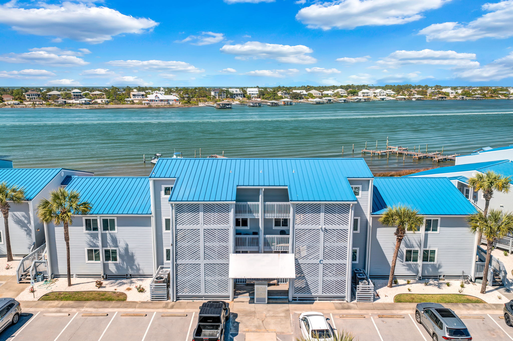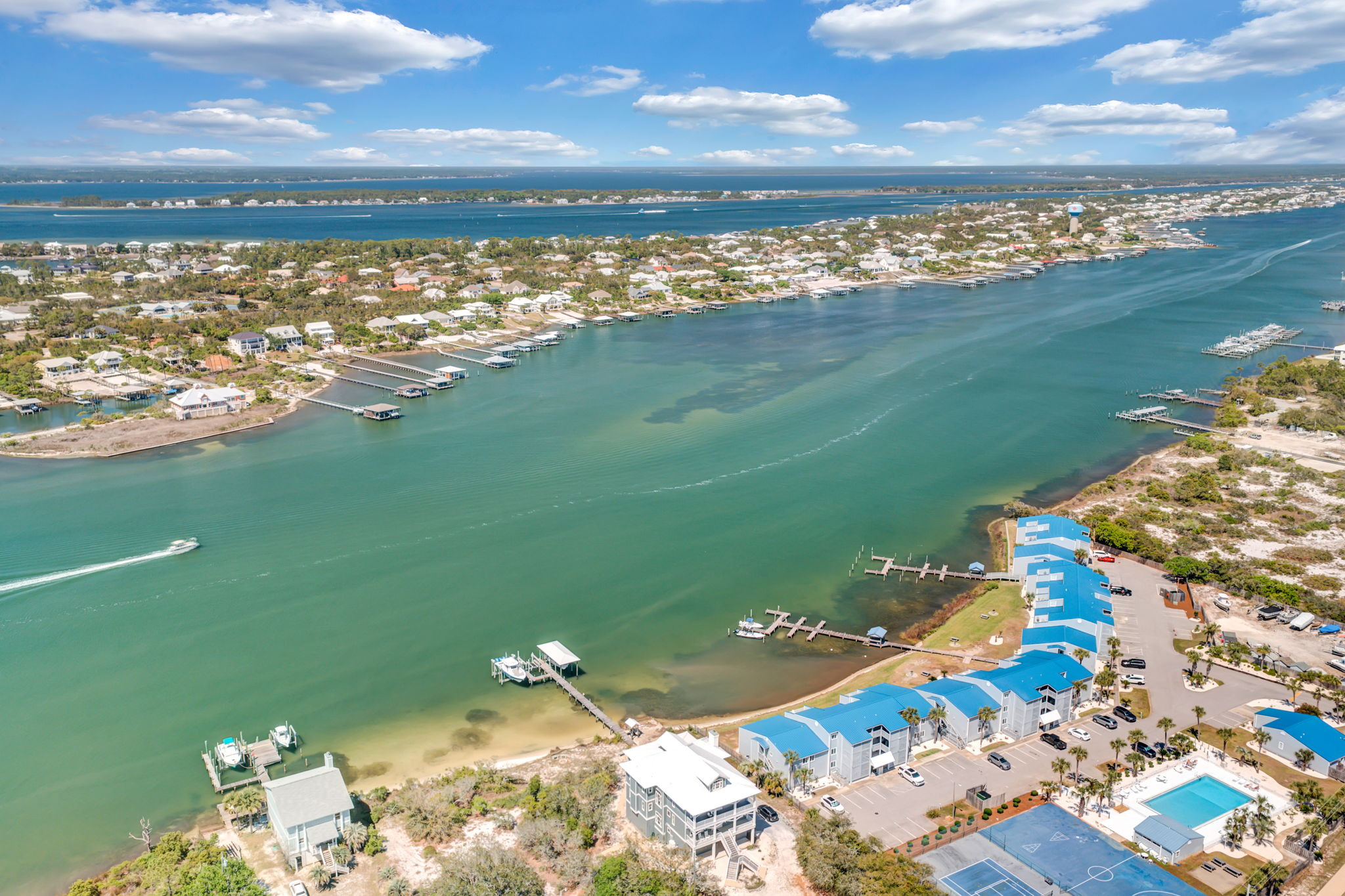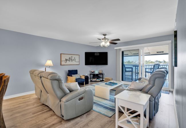Sundown Riverside C-22 | Perdido Key 2BR/2BA second-floor condo sleeps 6 with stunning Ole’ River views and just 200 yards from the beach. Enjoy an oversized pool, tennis/pickleball, basketball, BBQ grills, boat slips & trailer storage. Inside: king master, guest room with queen + 2 twins, electric sofa and love seat, full kitchen, washer/dryer, dining for 6 + bar seating, gigabit WiFi, sports cable, and a covered patio overlooking the river. Your perfect coastal retreat!