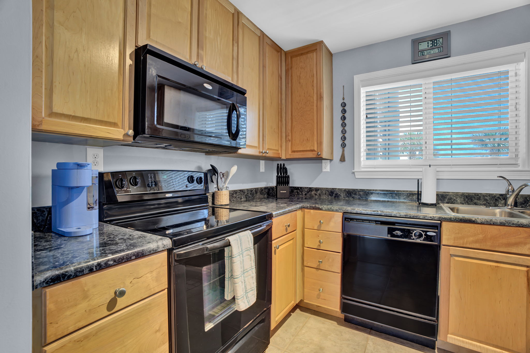 Fully equipped kitchen with all major appliances, cookware, and dining essentials